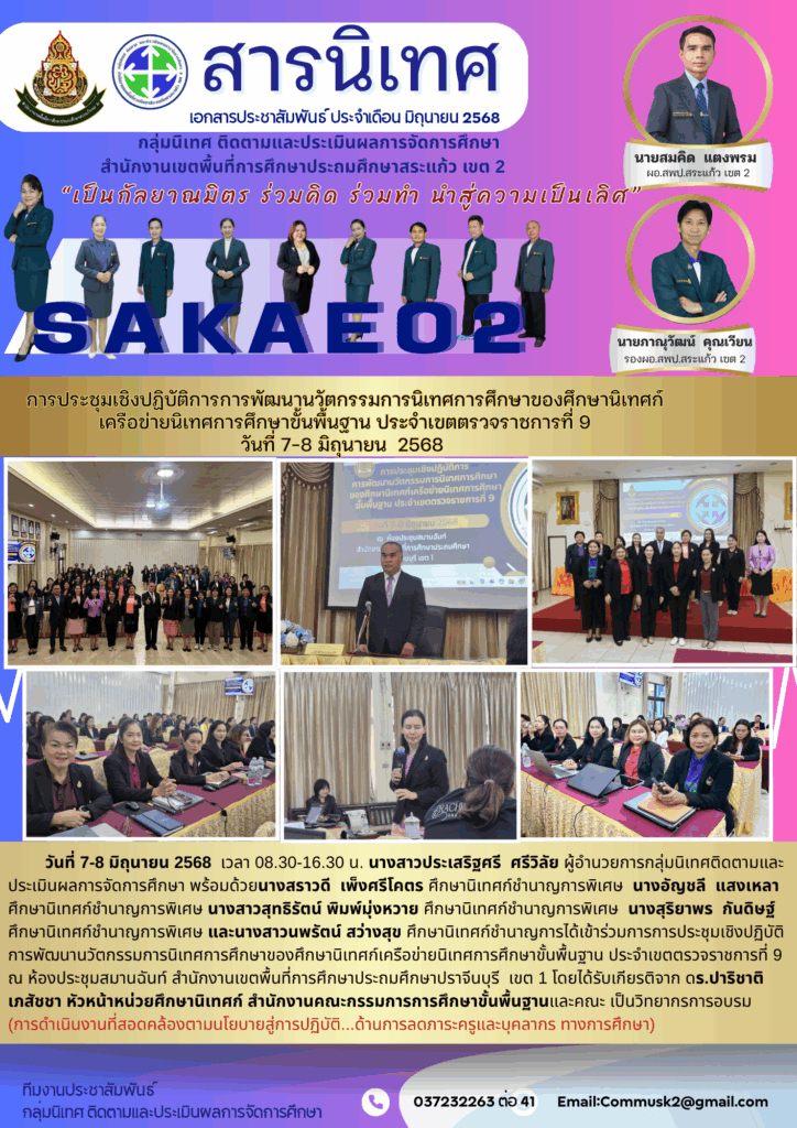 การประชุมเชิงปฏิบัติการการพัฒนานวัตกรรมการนิเทศการศึกษาของศึกษานิเทศก์เครือข่ายนิเทศการศึกษาขั้นพื้นฐาน ประจำเขตตรวจราชการที่ 9 มิถุนายน 9, 2025มิถุนายน 9, 2025 นิเทศติดตามและประเมินผล กลุ่มนิเทศติดตามฯ, วารสาร ประชาสัมพันธ์ วันที่ 7-8 มิถุนายน 2568 Post Views: 97 นิเทศติดตามและประเมินผล