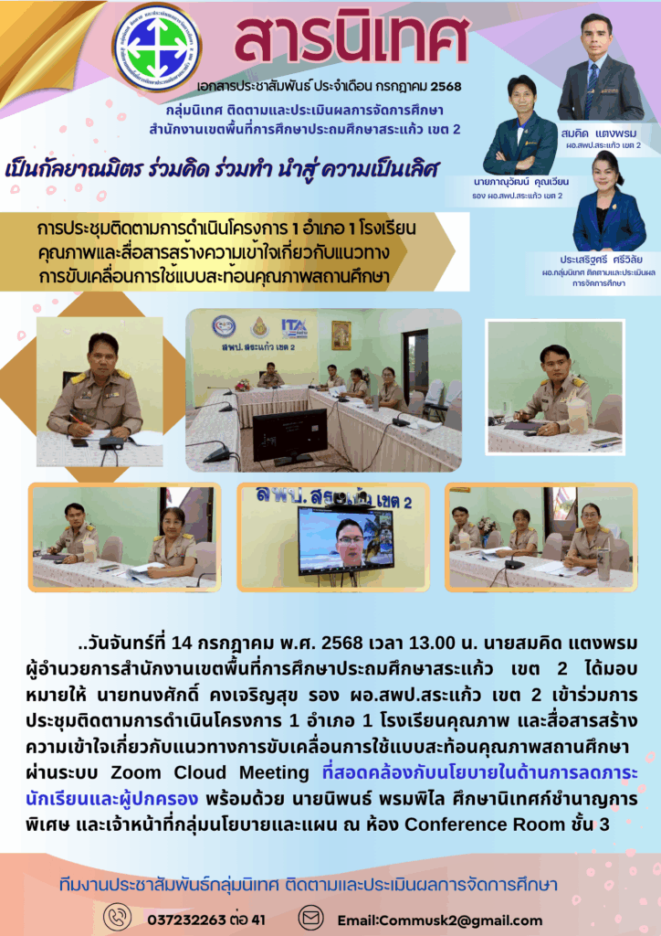 การประชุมติดตามการดำเนินโครงการ 1 อำเภอ 1 โรงเรียน คุณภาพและสื่อสารสร้างความเข้าใจเกี่ยวกับแนวทาง การขับเคลื่อนการใช้แบบสะท้อนคุณภาพสถานศึกษา กรกฎาคม 16, 2025กรกฎาคม 16, 2025 นิเทศติดตามและประเมินผล กลุ่มนิเทศติดตามฯ, วารสาร ประชาสัมพันธ์ Post Views: 93 นิเทศติดตามและประเมินผล
