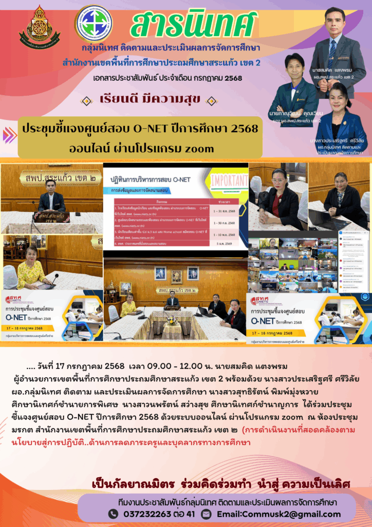 ประชุมชี้แจงศูนย์สอบ O-NET ปีการศึกษา 2568 ออนไลน์ ผ่านโปรแกรม zoom กรกฎาคม 23, 2025กรกฎาคม 23, 2025 นิเทศติดตามและประเมินผล กลุ่มนิเทศติดตามฯ, วารสาร ประชาสัมพันธ์ Post Views: 92 นิเทศติดตามและประเมินผล