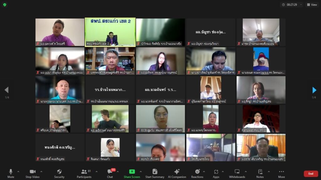 สำนักงานเขตพื้นที่การศึกษาประถมศึกษา สระแก้ว เขต 2 นำโดย นายสมคิดแตง แตงพรม ผู้อำนวยการสำนักงานเขตพื้นที่การศึกษาประถมศึกษา สระแก้ว เขต 2 ได้จัดการประชุมผู้อำนวยการกลุ่ม และผู้อำนวยการโรงเรียน เกี่ยวกับความปลอดภัยของครูและนักเรียนการเปิดเรียน สำหรับโรงเรียนที่อยู่ติดกับแนวชายแดน ผ่านระบบ Zoom Meeting เนื่องในสถานการณ์ชายแดนไทย-กัมพูชา