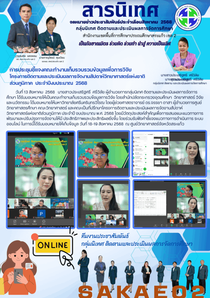 การประชุมชี้แจงคณะทำงานเก็บรวบรวมข้อมูลเพื่อการวิจัย สิงหาคม 18, 2025สิงหาคม 18, 2025 นิเทศติดตามและประเมินผล กลุ่มนิเทศติดตามฯ, วารสาร ประชาสัมพันธ์ โครงการติดตามและประเมินผลการจัดงานสัปดาห์วิทยาศาสตร์แห่งชาติ ส่วนภูมิภาค ประจำปีงบประมาณ 2568 Post Views: 80 นิเทศติดตามและประเมินผล