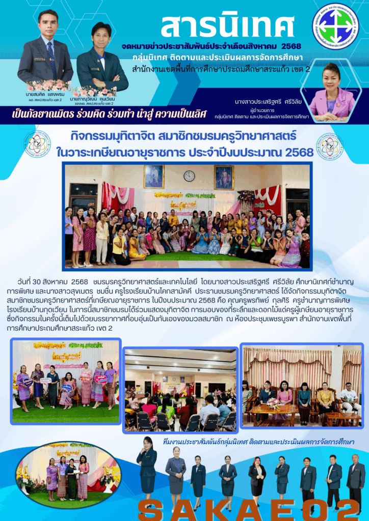 กิจกรรมมุทิตาจิต สมาชิกชมรมครูวิทยาศาสตร์ กันยายน 10, 2025กันยายน 10, 2025 นิเทศติดตามและประเมินผล กลุ่มนิเทศติดตามฯ, วารสาร ประชาสัมพันธ์ ในวาระเกษียณอายุราชการ ประจำปีงบประมาณ 2568 Post Views: 30 นิเทศติดตามและประเมินผล