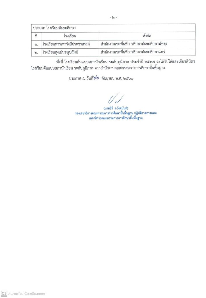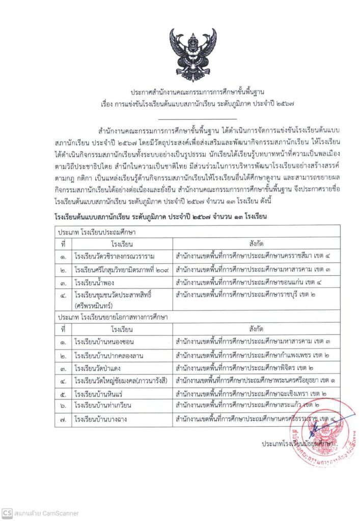 สพป.สระแก้ว เขต 2 ขอแสดงความยินดีกับโรงเรียนบ้านท่าเกวียน โรงเรียนต้นแบบสภานักเรียน