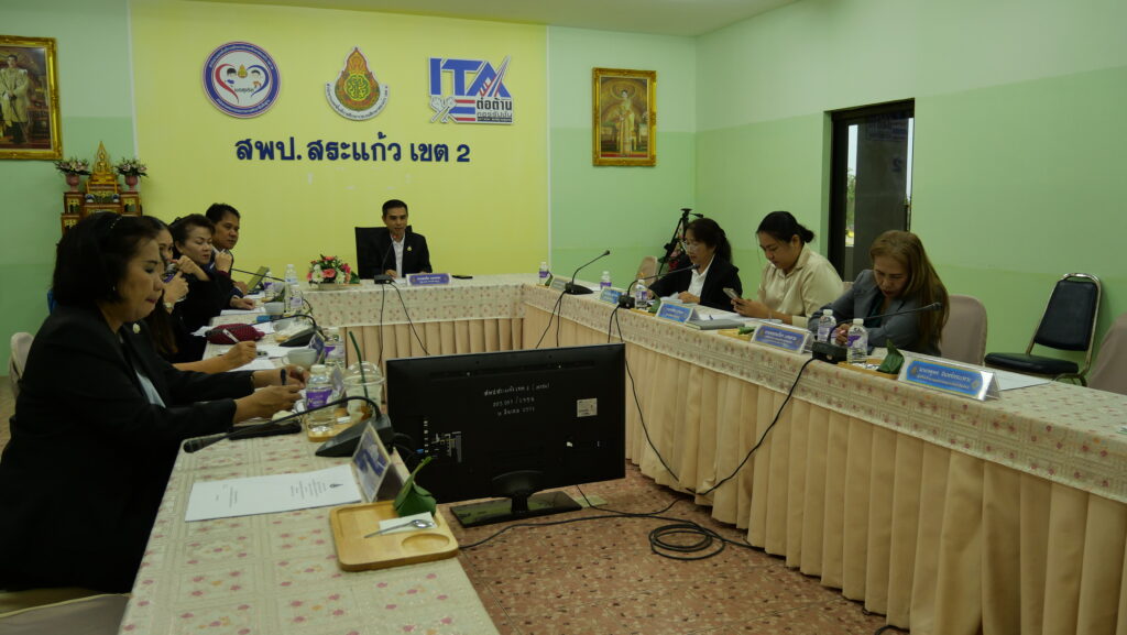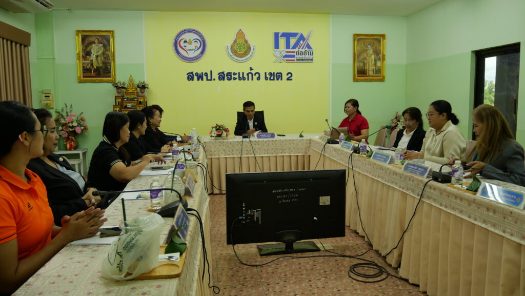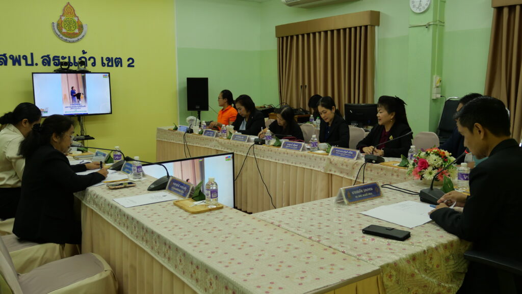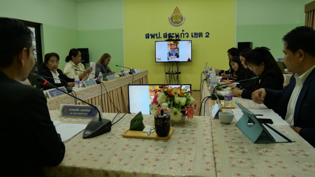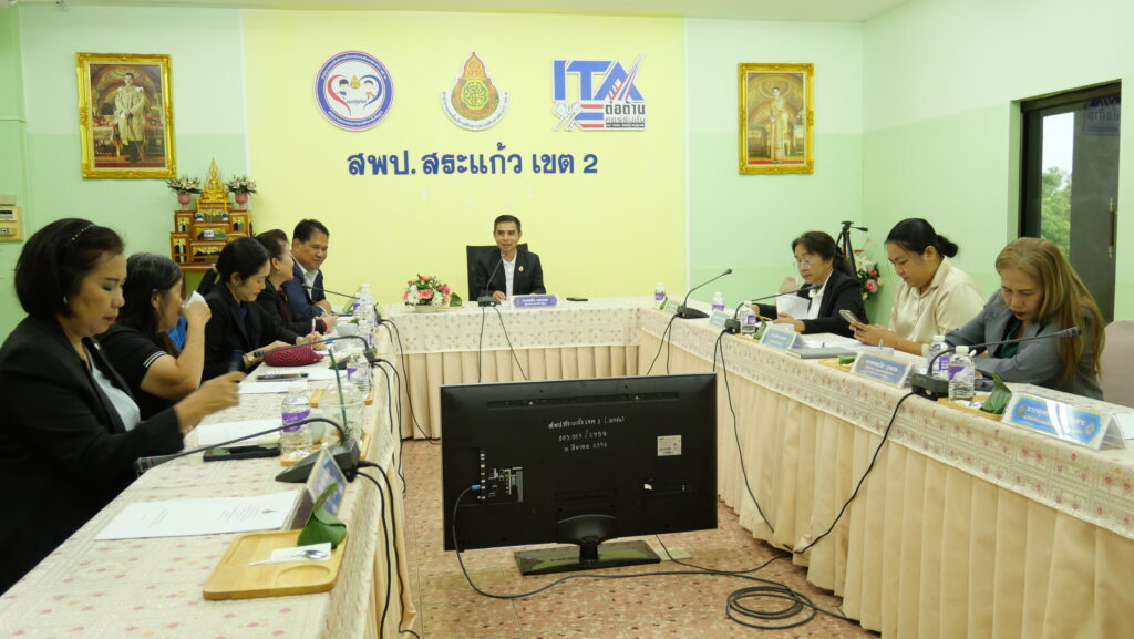 วันพฤหัสบดีที่ 2 ตุลาคม 2568 นายสมคิด แตงพรม ผู้อำนวยการสำนักงานเขตพื้นที่การศึกษาประถมศึกษาสระแก้ว เขต 2 เป็นประธานการประชุมผู้บริหารการศึกษา ผู้อำนวยการกลุ่ม/หน่วย สำนักงานเขตพื้นที่การศึกษาประถมศึกษาสระแก้ว เขต 2 ครั้งที่ 24/2568 และรับชมรายการพฤหัสเช้า ข่าว สพฐ ครั้งที่ 39/2568 รายการข่าวสารการศึกษาจากทั่วประเทศ และเรื่องราวกระแสที่น่าสนใจ น่าติดตาม ด้านความเคลื่อนไหวต่าง ๆ ที่เกี่ยวข้องของนโยบายและข้อมูลที่เป็นประโยชน์ต่อการปฏิบัติราชการ ณ ห้องประชุม Conference ชั้น 3 อาคารสำนักงาน สพป. สระแก้ว เขต 2 อำเภออรัญประเทศ จังหวัดสระแก้ว