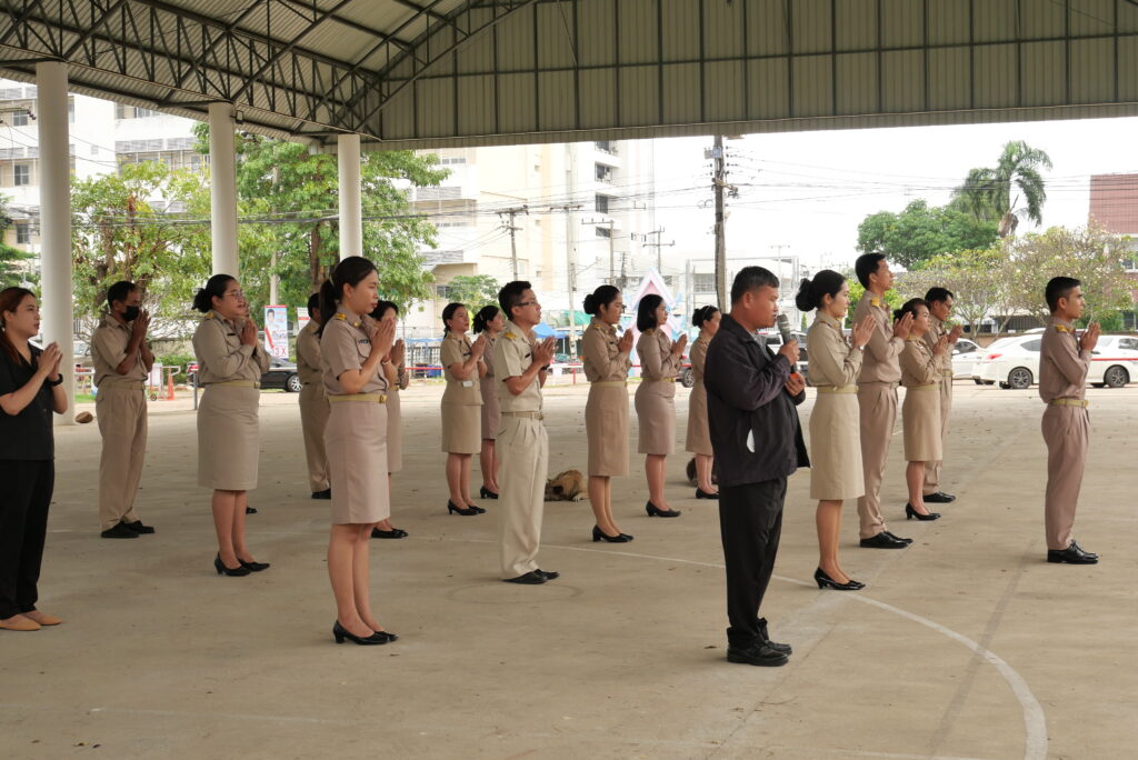 วันจันทร์ที่ 17 พฤศจิกายน 2568 นายสมคิด แตงพรม ผู้อำนวยการสำนักงานเขตพื้นที่การศึกษาประถมศึกษาสระแก้ว เขต 2 นำข้าราชการและบุคลากรทางการศึกษา ตลอดจนพนักงานราชการและเจ้าหน้าที่/ลูกจ้างทุกกลุุ่มงานร่วมในกิจกรรมหน้าเสาธง ณ บริเวณโดมอเนกประสงค์ด้านหน้าอาคารสำนักงานเขตพื้นที่การศึกษาประถมศึกษาสระแก้ว เขต 2 โดยมีนายภาณุวัฒน์ คุณเวียน รองผู้อำนวยการสำนักงานเขตพื้นที่การศึกษาประถมศึกษาสระแก้ว เขต 2 และผู้อำนวยการกลุ่ม/หน่วยร่วมกิจกรรมอย่างพร้อมเพรียงกัน