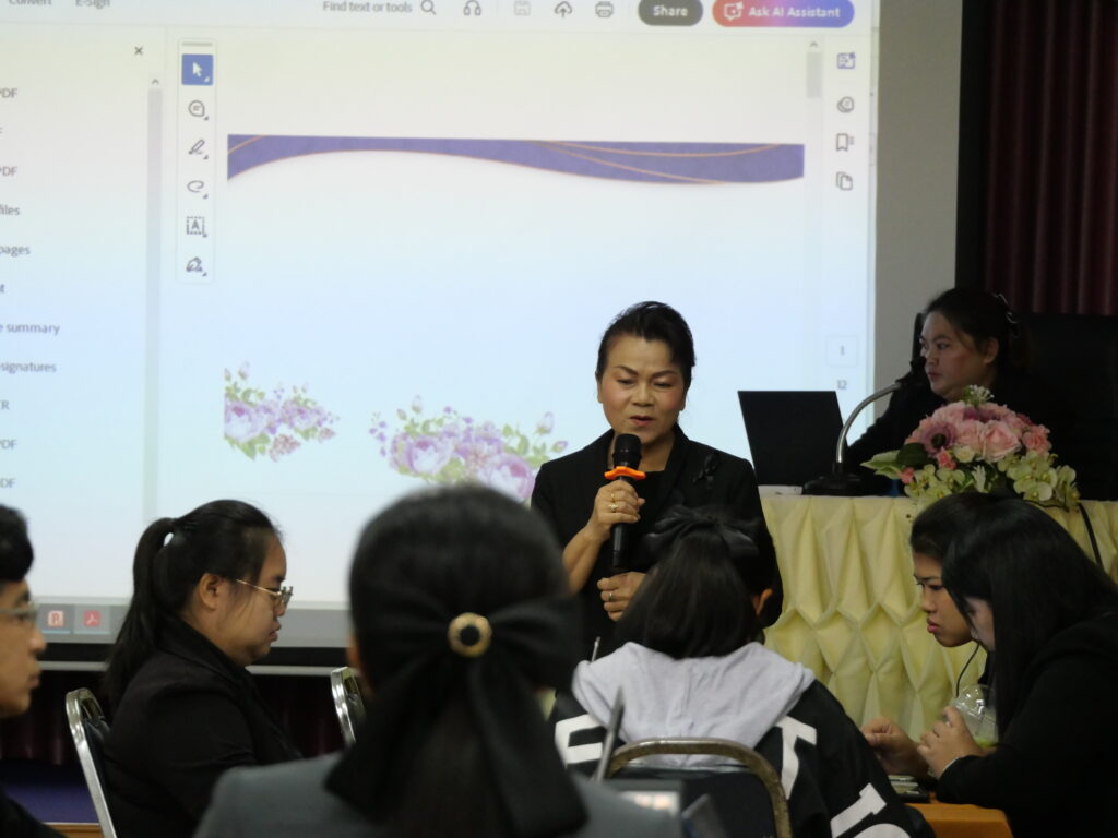 นางสาวนพรัตน์ สว่างสุข ศึกษานิเทศก์ชำนาญการ ได้พูดคุยถึงแนวทางและรูปแบบวิธีการจัดสร้างแบบทดสอบ