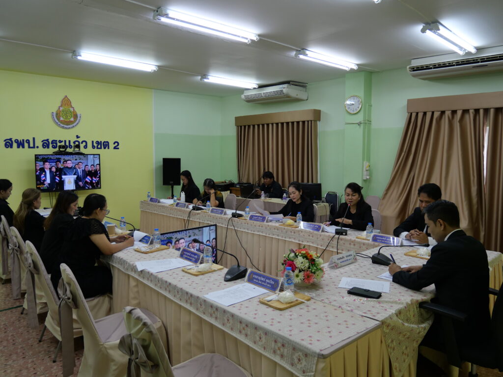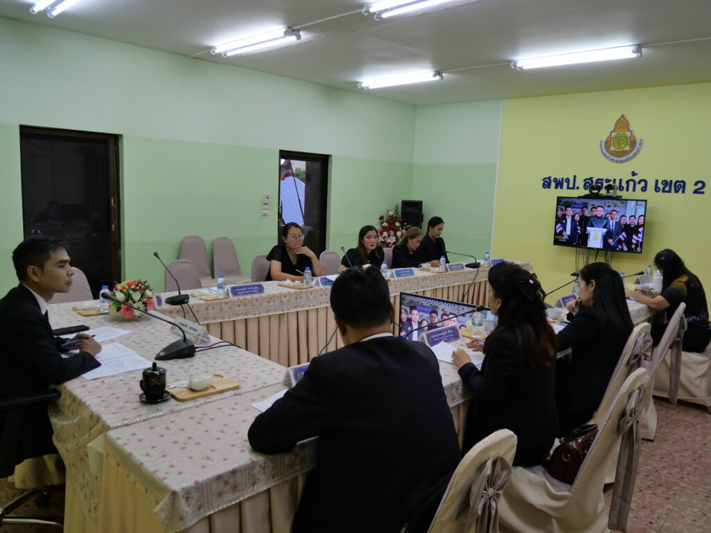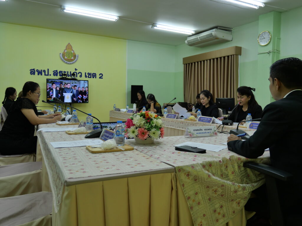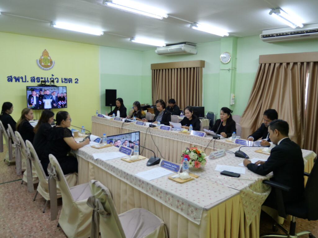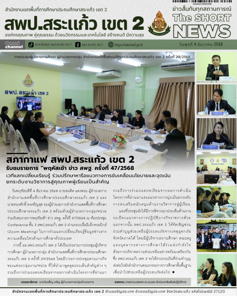เวทีแลกเปลี่ยนเรียนรู้ ร่วมปรึกษาหารือแนวทางการขับเคลื่อนนโยบายและจุดเน้นยกระดับงานวิชาการสู่คุณภาพผู้เรียนเป็นสำคัญ วันพฤหัสบดีที่ 4 ธันวาคม 2568 นายสมคิด แตงพรม ผู้อำนวยการสำนักงานเขตพื้นที่การศึกษาประถมศึกษาสระแก้ว เขต 2 และนายทนงศักดิ์ คงเจริญสุข รองผู้อำนวยการสำนักงานเขตพื้นที่การศึกษาประถมศึกษาสระแก้ว เขต 2 พร้อมด้วยผู้อำนวยการกลุ่ม/หน่วย ร่วมรับชมรายการพฤหัสเช้า ข่าว สพฐ. ครั้งที่ 47/2568 ณ ห้องประชุม Conference ชั้น 3 สพป.สระแก้ว เขต 2 ผ่านระบบสื่ออิเล็กทรอนิกส์ (Zoom Meeting) ในการร่วมแลกเปลี่ยนเรียนรู้ข้อมูลข่าวสารความเคลื่อนไหวด้านการศึกษาทั่วประเทศ