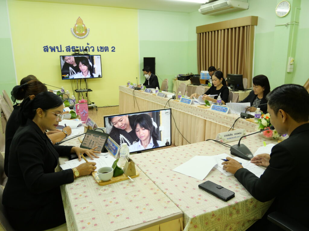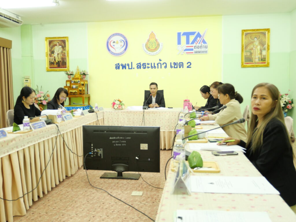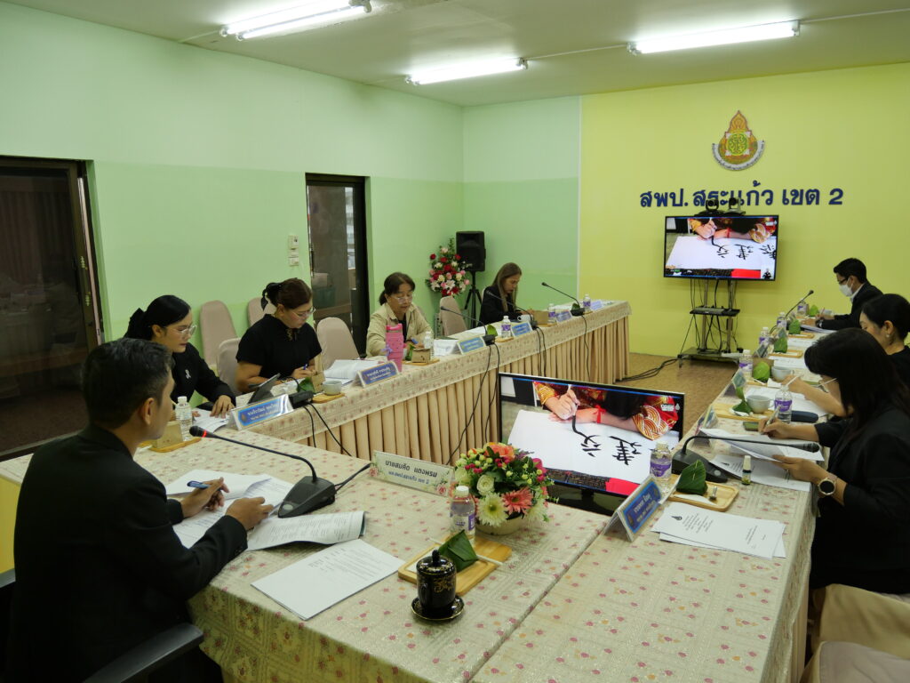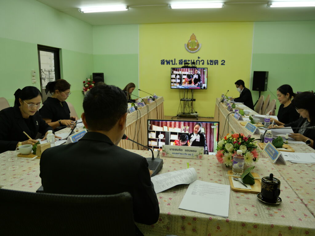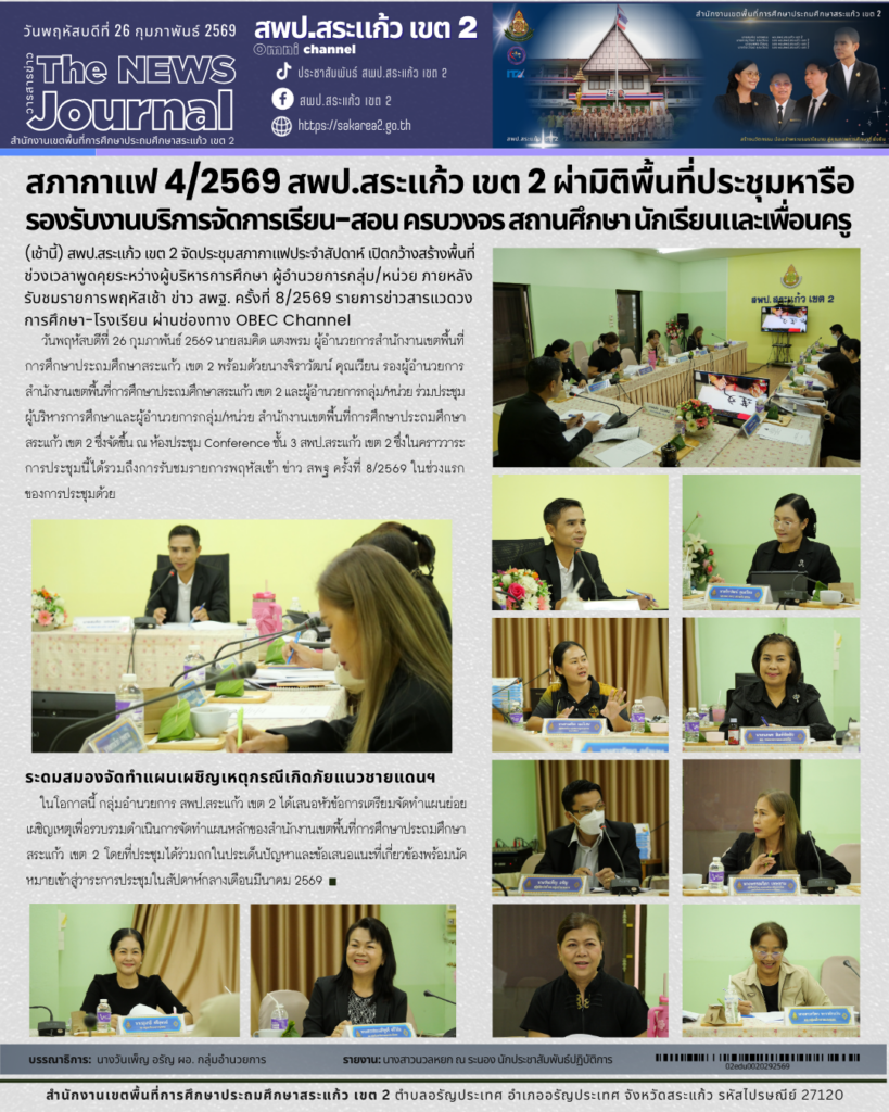 วันพฤหัสบดีที่ 26 กุมภาพันธ์ 2569 นายสมคิด แตงพรม ผู้อำนวยการสำนักงานเขตพื้นที่การศึกษาประถมศึกษาสระแก้ว เขต 2 พร้อมด้วยนางจิราวัฒน์ คุณเวียน รองผู้อำนวยการสำนักงานเขตพื้นที่การศึกษาประถมศึกษาสระแก้ว เขต 2 และผู้อำนวยการกลุ่ม/หน่วย ร่วมประชุมผู้บริหารการศึกษาและผู้อำนวยการกลุ่ม/หน่วย สำนักงานเขตพื้นที่การศึกษาประถมศึกษาสระแก้ว เขต 2 ซึ่งจัดขึ้น ณ ห้องประชุม Conference ชั้น 3 สพป.สระแก้ว เขต 2 ซึ่งในคราววาระการประชุมนี้ได้รวมถึงการรับชมรายการพฤหัสเช้า ข่าว สพฐ ครั้งที่ 8/2569 ในช่วงแรกของการประชุมด้วย