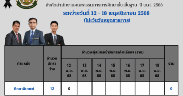 สพป.สระแก้ว เขต 2 ประกาศรับสมัครศึกษานิเทศก์